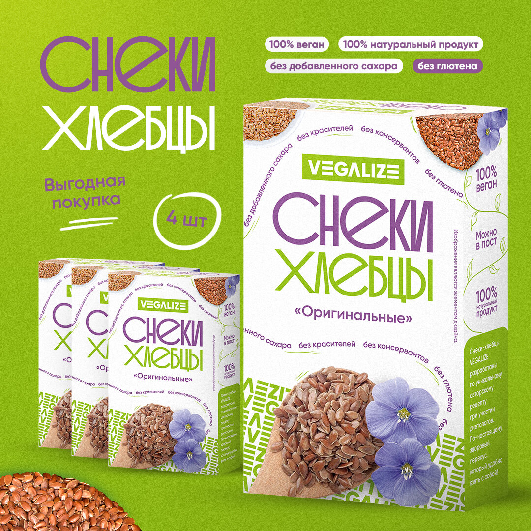 Снеки-хлебцы "Оригинальные" VEGALIZE, 4 шт информация: