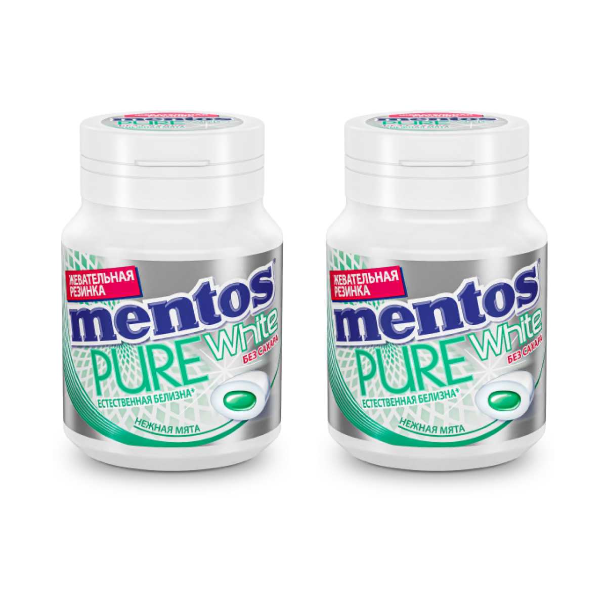 Mentos Pure white Нежная Мята жевательная резинка в банке 54г 6шт 1 068 ₽