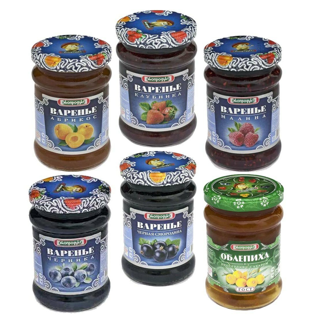 | Состав | Варенье абрикосовое: абрикос, сахар, лимонная кислота. Варенье клубничное: клубника, сахар, лимонная кислота. Варенье черничное: черника, сахар, лимонная кислота. Варенье малиновое: малина, сахар, лимонная кислота. Варенье из черной смородины: черная смородина, сахар, лимонная кислота. Облепиха протертая с сахаром: облепиха, сахар. |