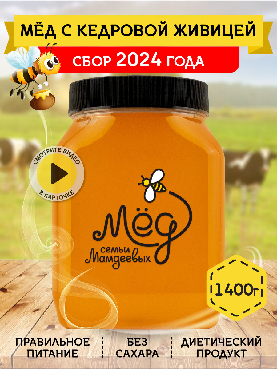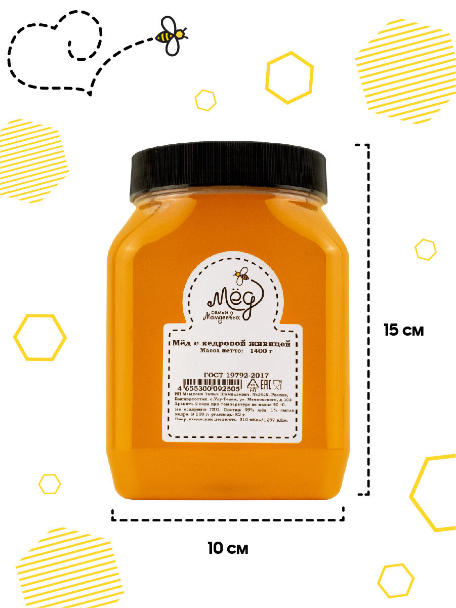 Мёд с кедровой живицей, 1,4 кг Башкирский натуральный мед, без сахара информация:
