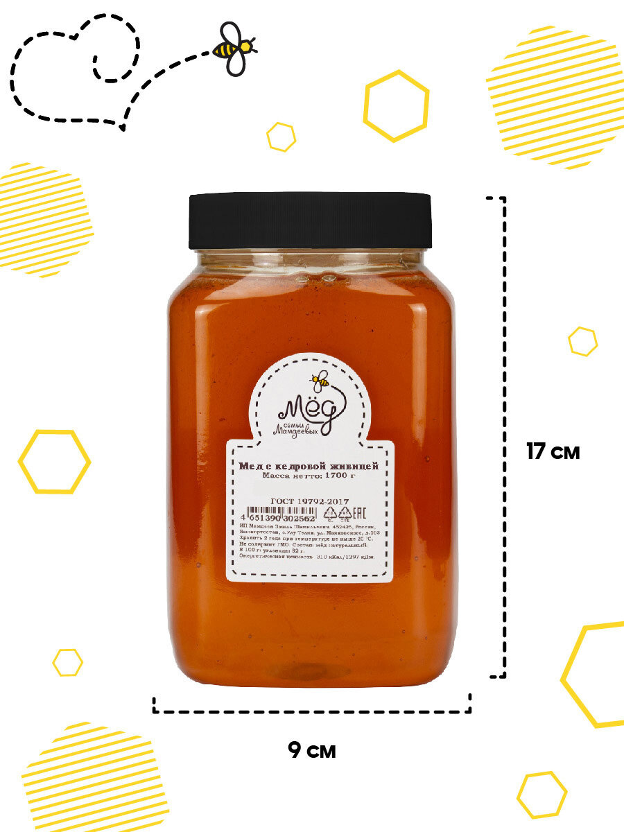 10 цен на Мёд с кедровой живицей, 1,7 кг Башкирский натуральный мед, без сахара