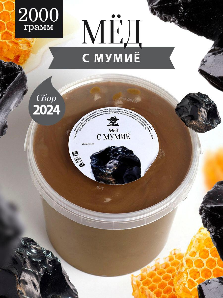 Мед с алтайским мумие 2 кг, натуральный, крем-мед, полезный подарок информация: