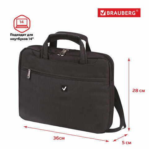 Сумка-портфель BRAUBERG с отделением для ноутбука 13-14", "Chance", 3 кармана, черная, 36х28х5 см, 240455 В комплекте: 1шт.