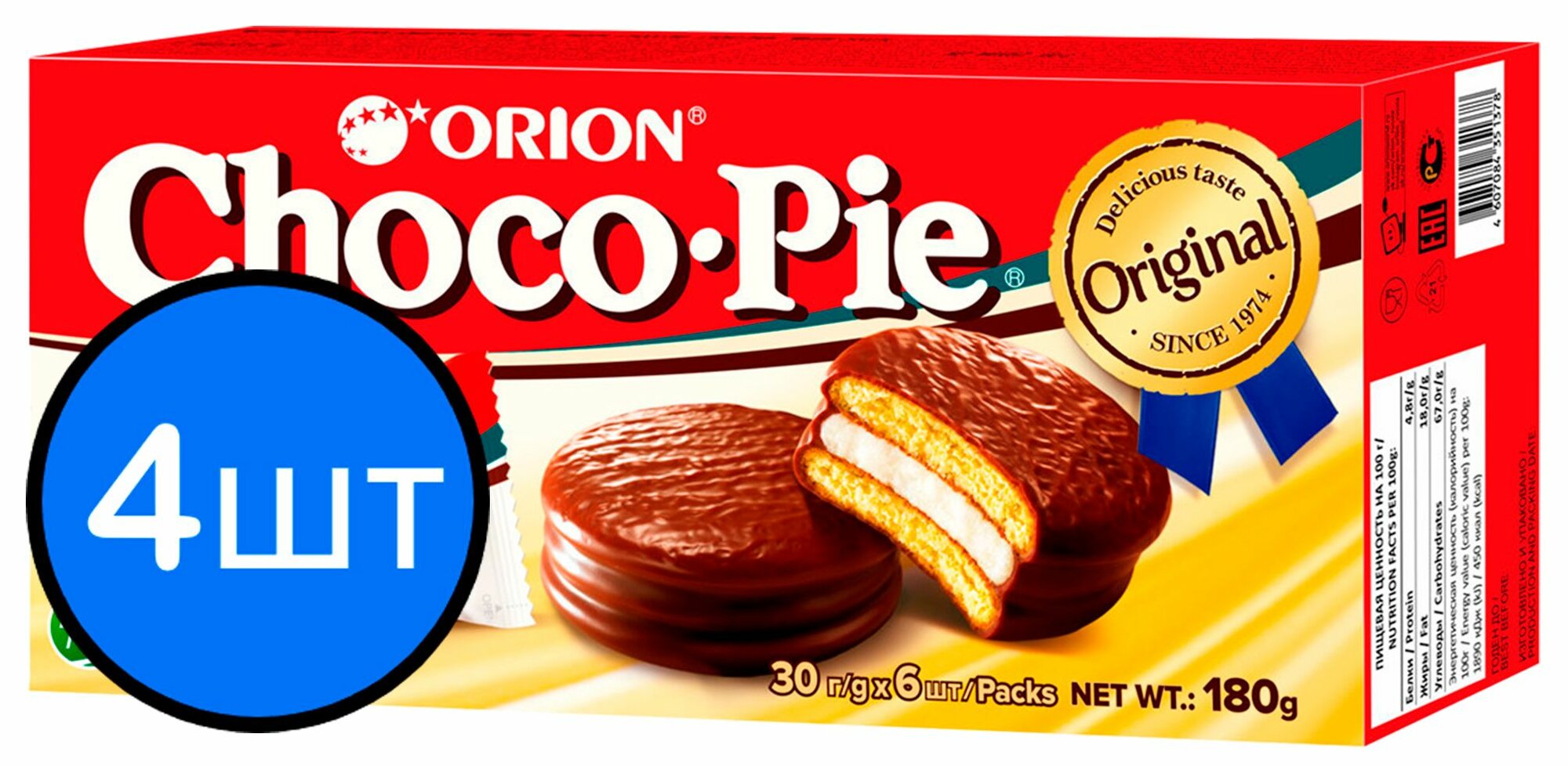 Печенье "ORION ChocoPie", 180г х 4шт информация: