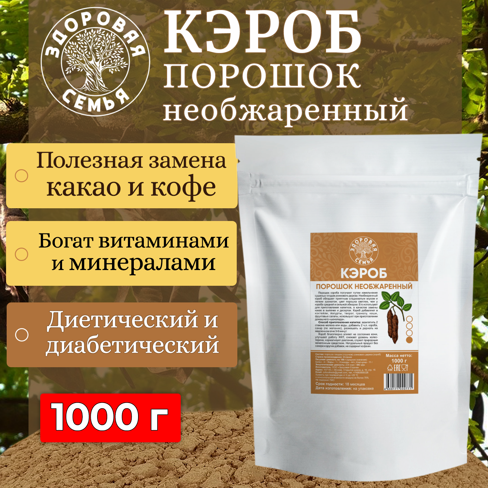 Кэроб порошок Здоровая Семья необжаренный (натуральный), 1 кг (1000 г) информация: