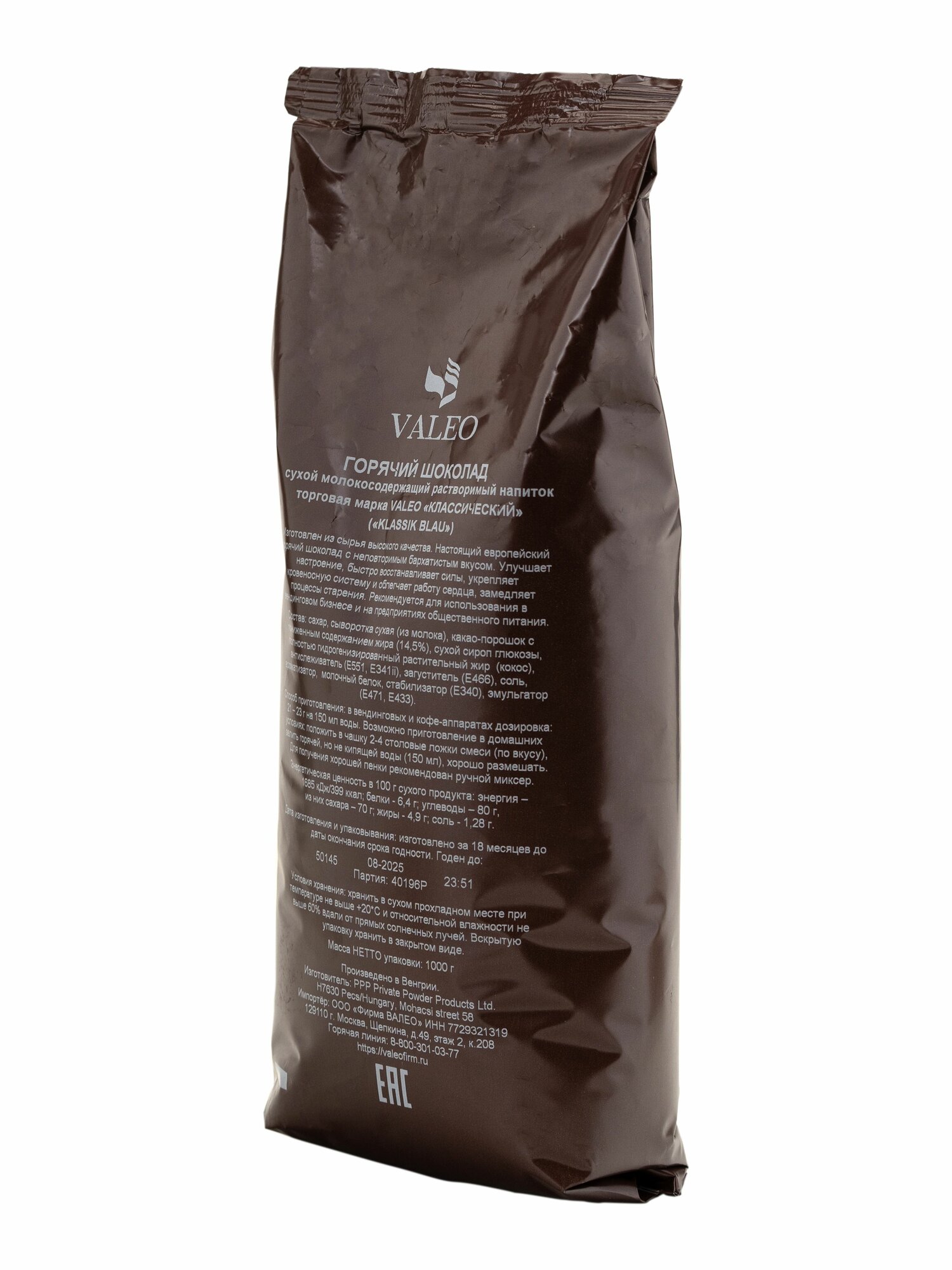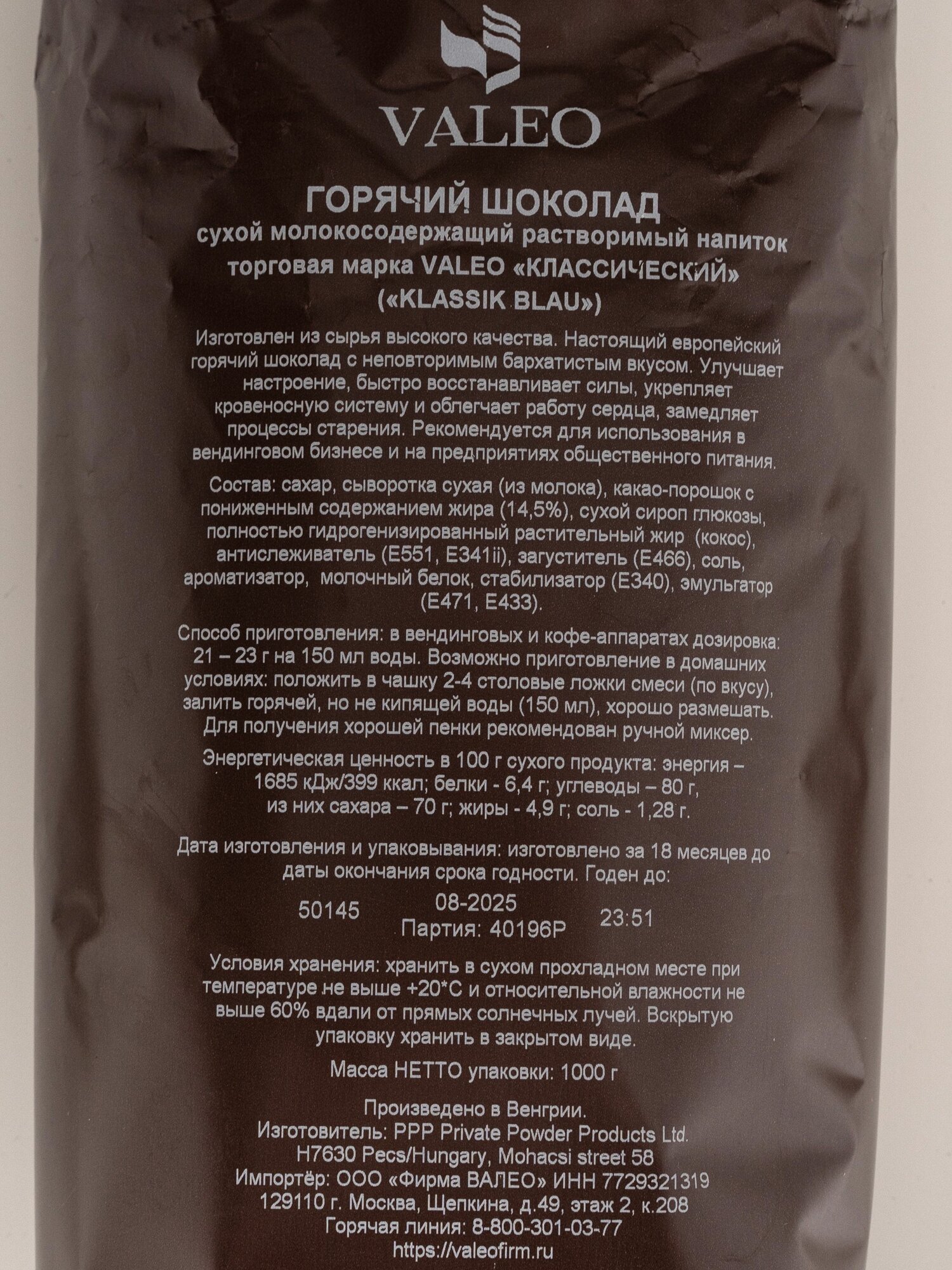 Горячий шоколад VALEO "классический" 1 кг информация:
