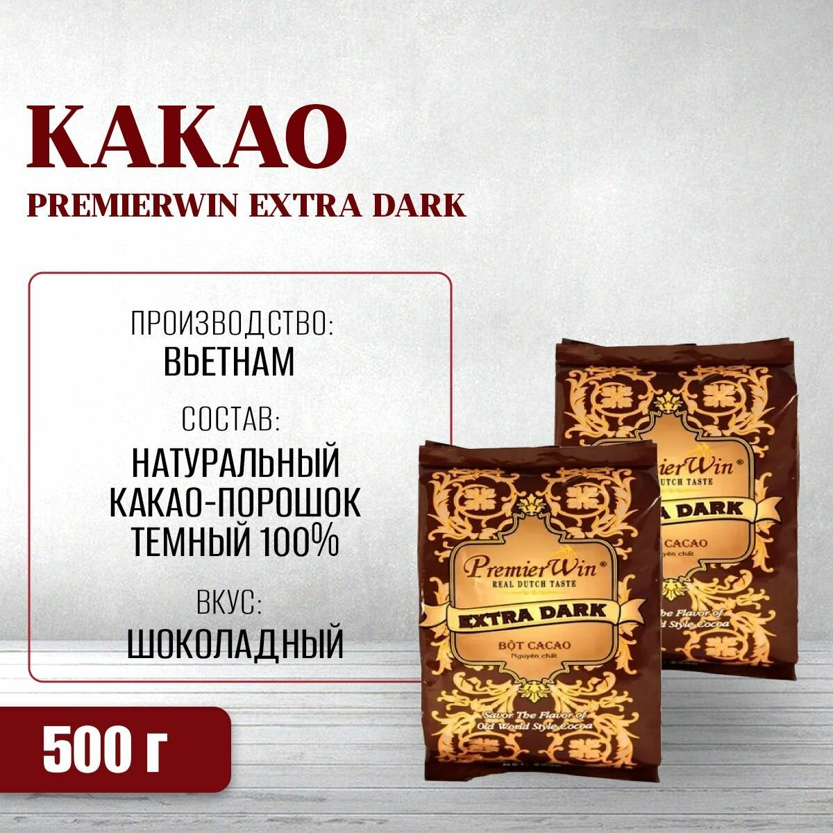 10 цен на Вьетнамское какао-порошок PremierWin Extra Dark 100%, 500г