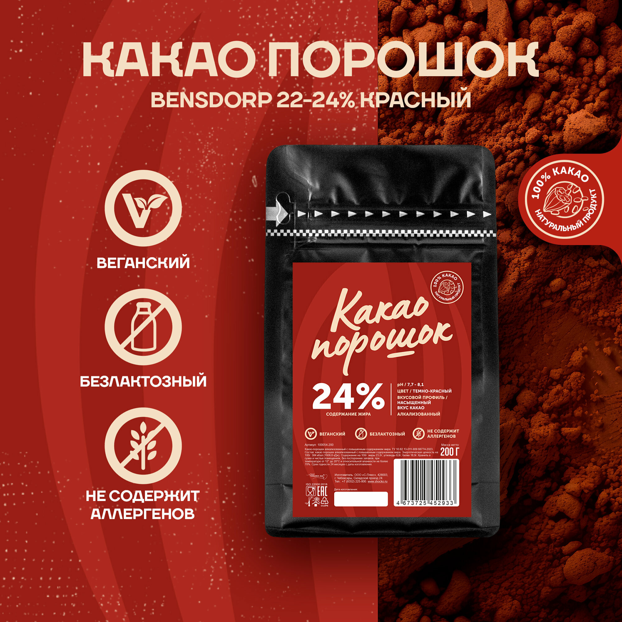 Алкализованный какао порошок 22-24% красный, натуральный Bensdorp 0,2 кг информация: