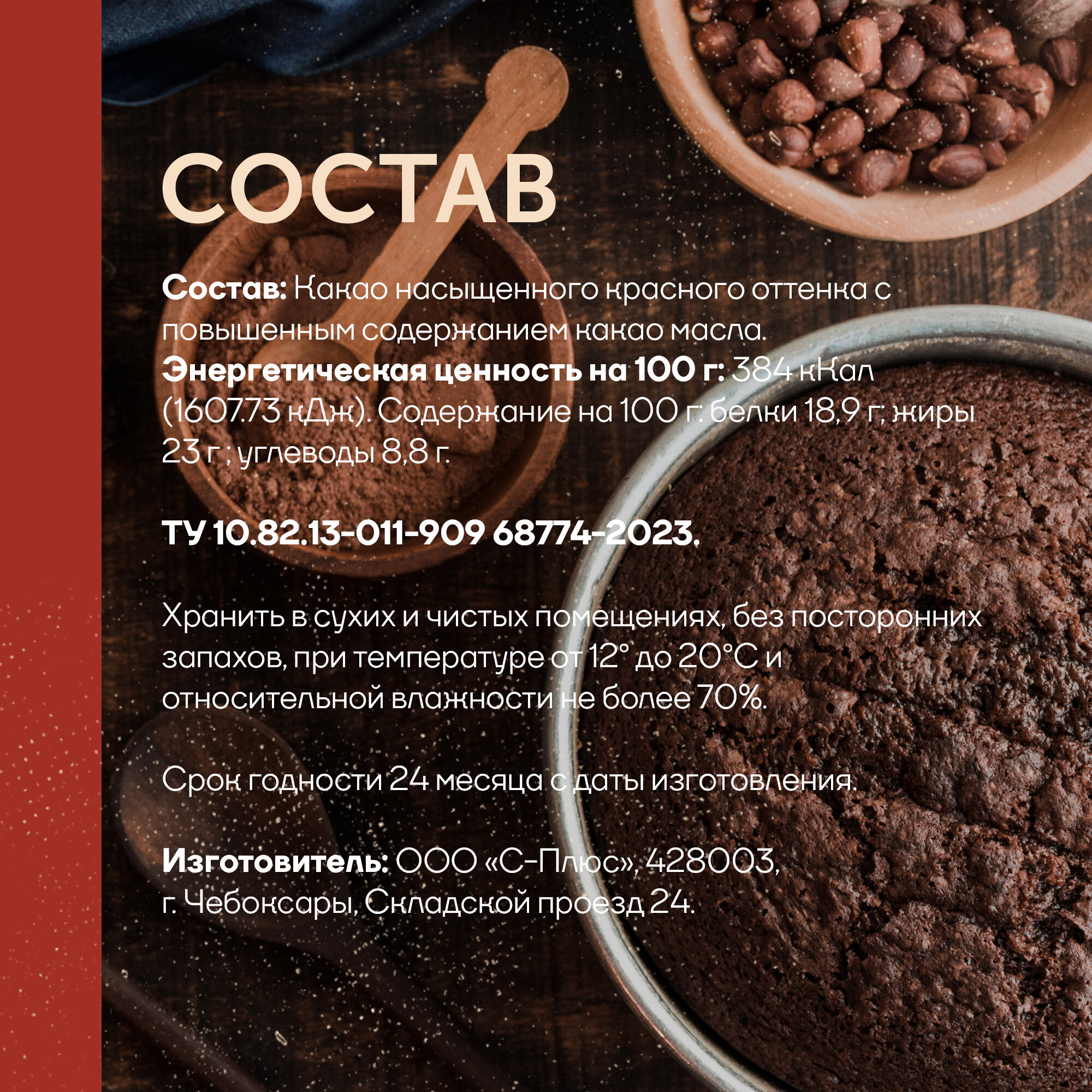 | Состав | какао-порошок алкализованный с повышенным содержанием жира |