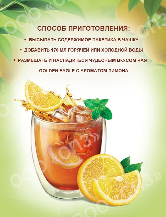 Растворимый чай со вкусом лимона "Golden Eagle", 20 пакетиков по 20 гр информация: