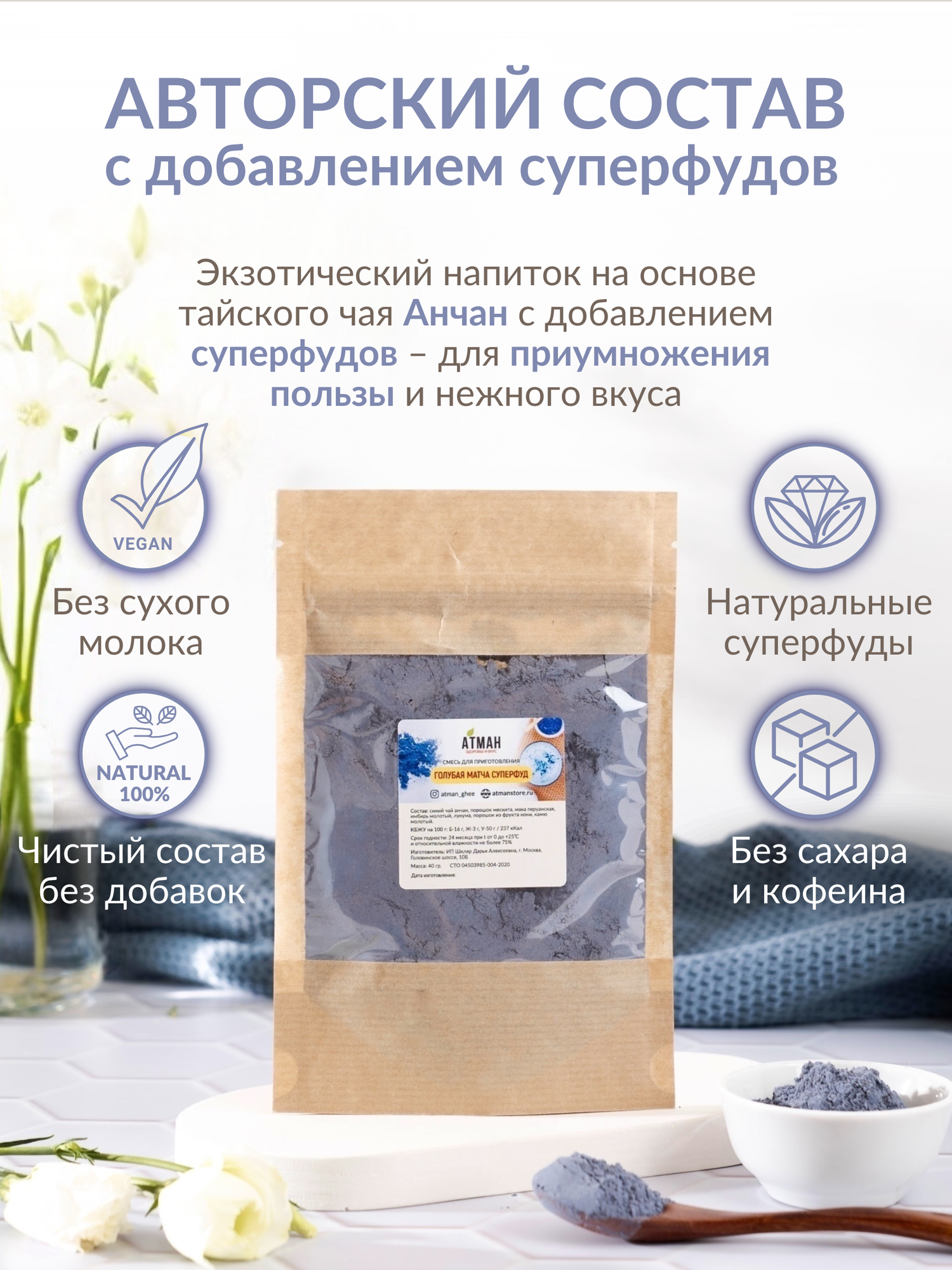 10 цен на Чай голубая матча, мини версия латте суперфуд 40 гр, АТМАН