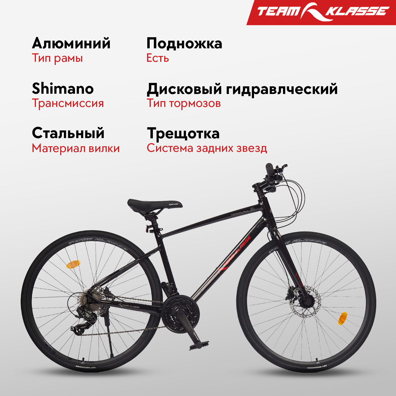 Шоссейный велосипед Team Klasse A-6-B, черный, красный, 28" информация: