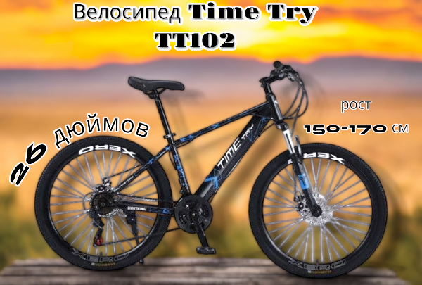 Велосипед Time Try TT102 26" Взрослый Подростковый Для активного отдыха, черный/ синий информация: