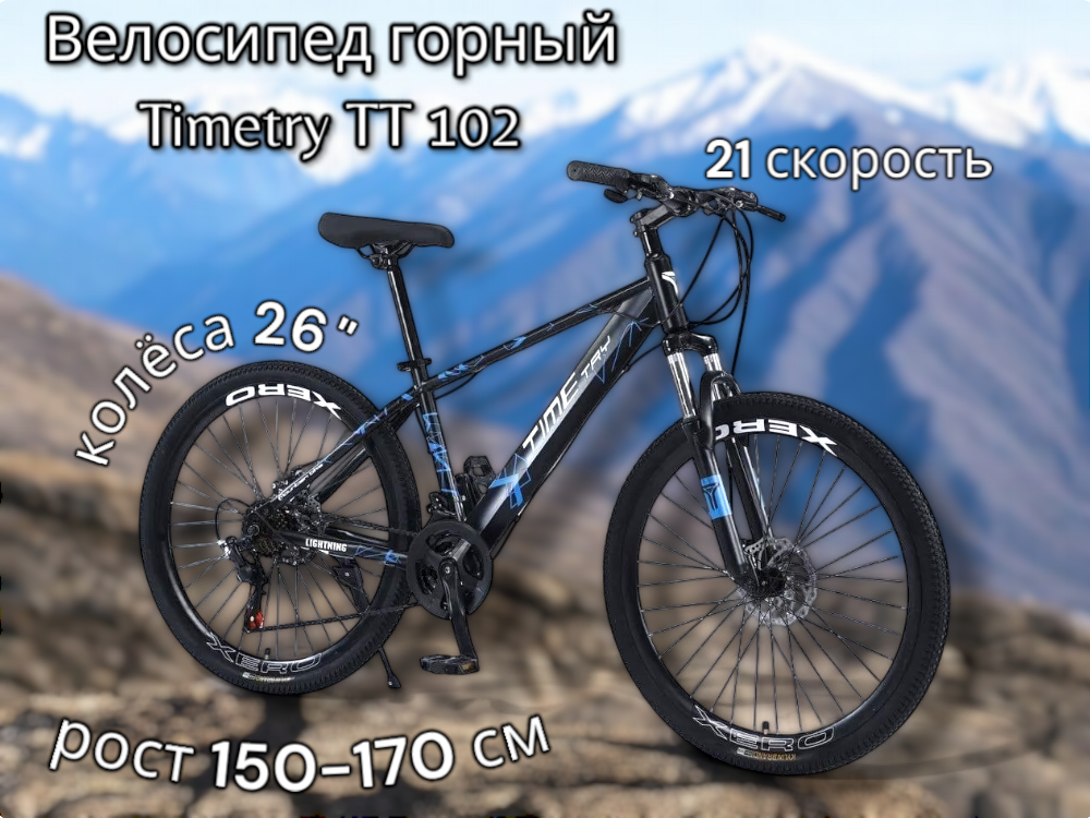 Велосипед Time Try TT102 26" Взрослый Подростковый Для активного отдыха, черный/ синий