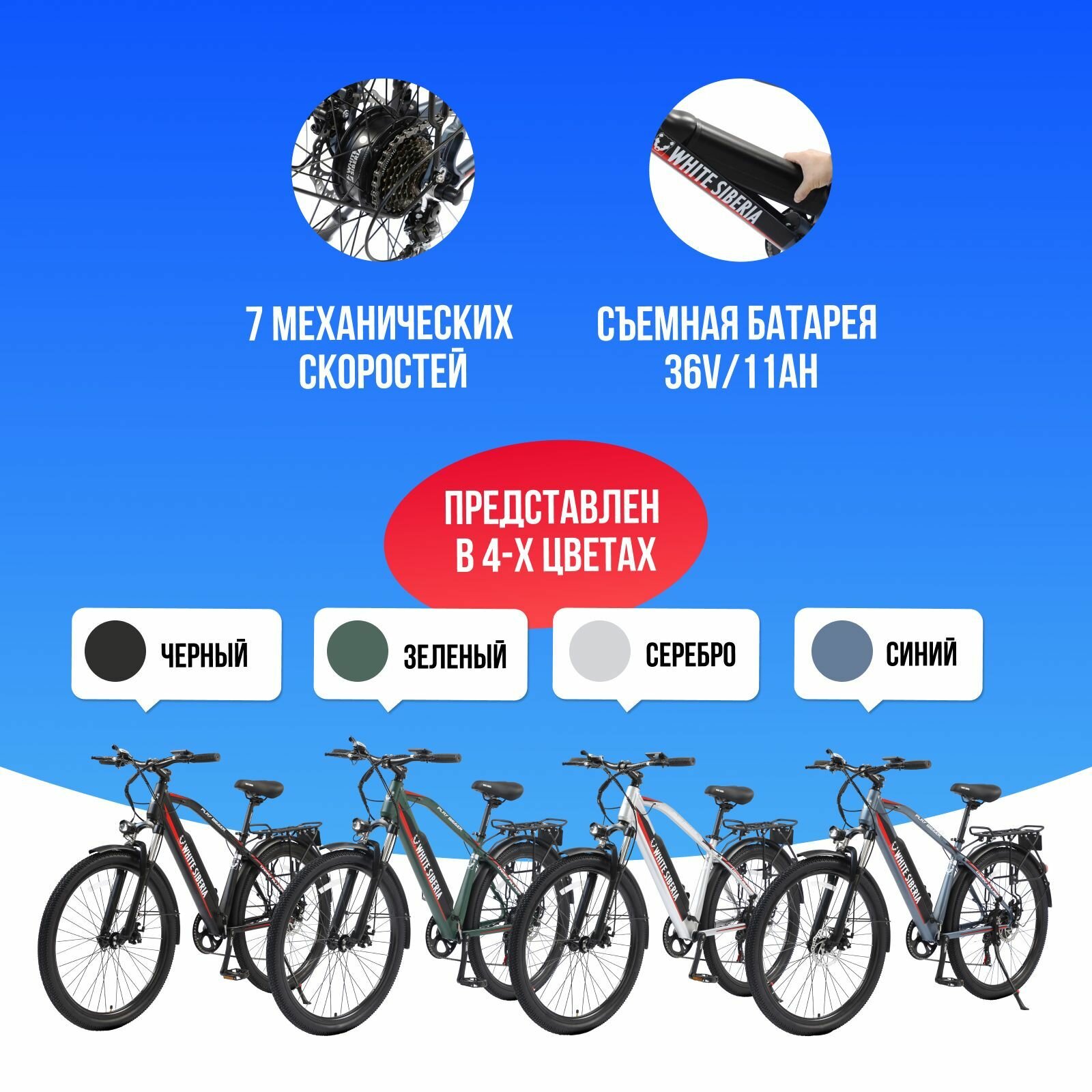 Отзывы на Электровелосипед WHITE SIBERIA CAMRY ALLROAD 500W 36V11A (Зеленый)