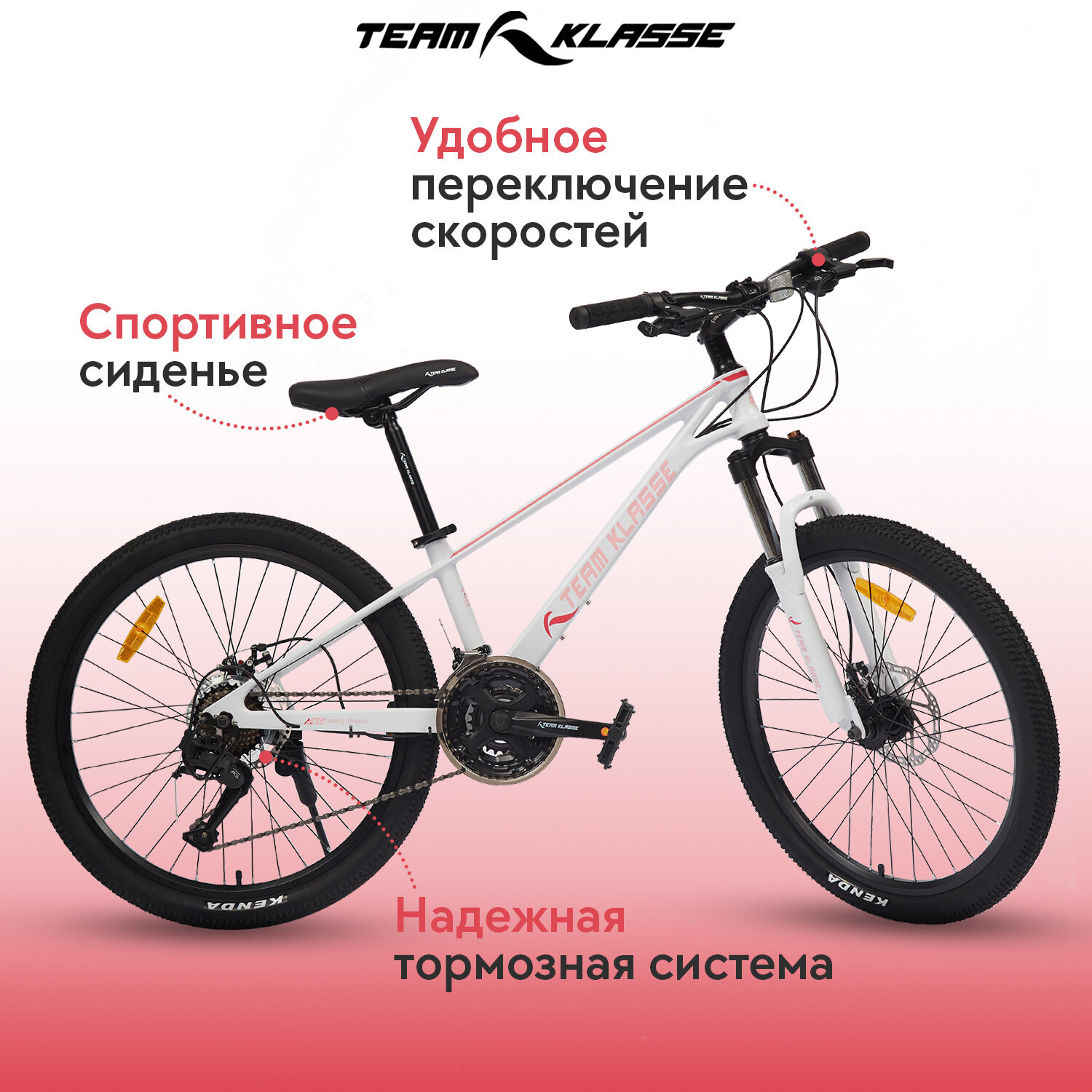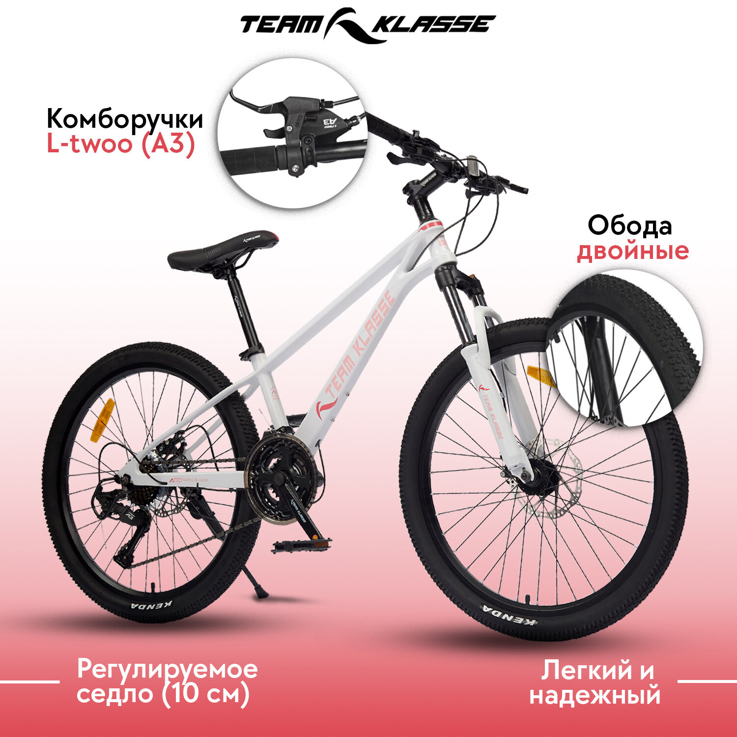 Горный велосипед Team Klasse B-9-E, белый, розовый, 24" информация: