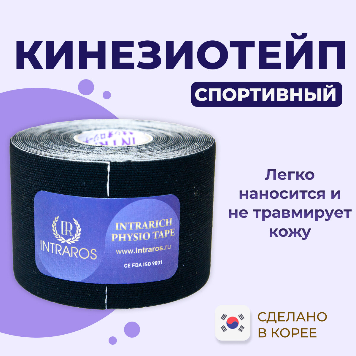 Тейп спортивный (лента) для тела INTRARICH CLASSIC, размер 5см х 5 м, цвет черный, влагостойкий, Корея 742 ₽