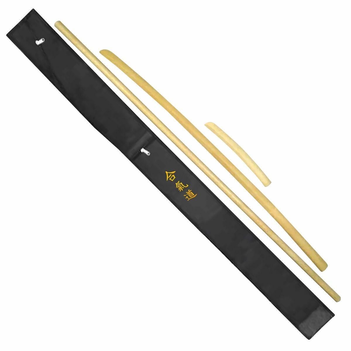 10 цен на Комплект тренировочного оружия из бука (боккен 102см, дзё 130см, танто 29см, черный чехол с вышивкой Айкидо)