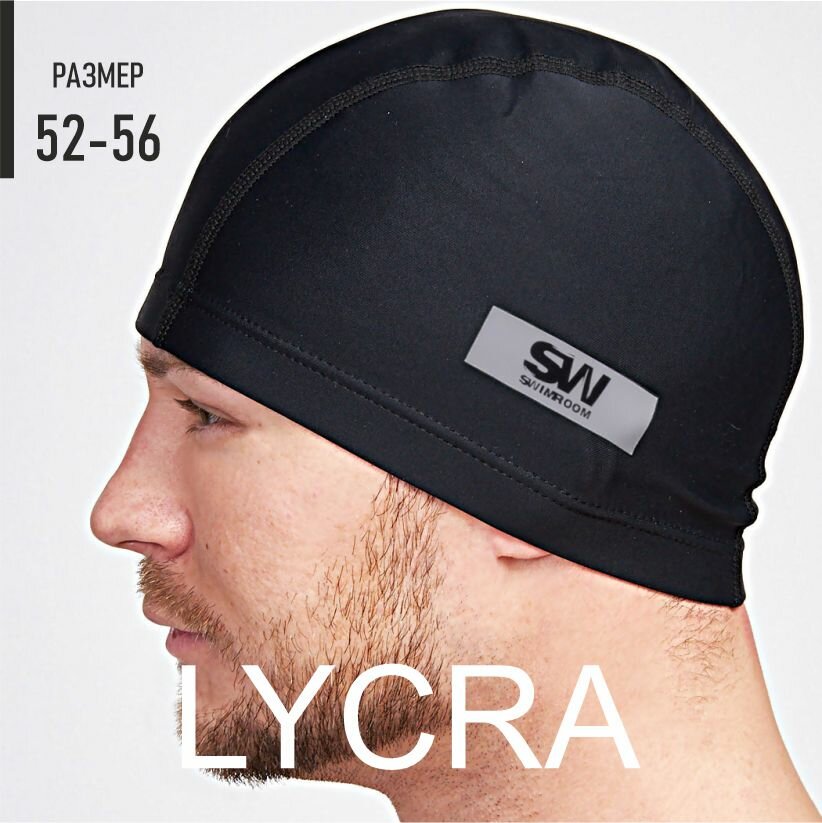 Тканевая шапочка для плавания / бассейна SwimRoom “Lycra”, размер 52-56, цвет черный