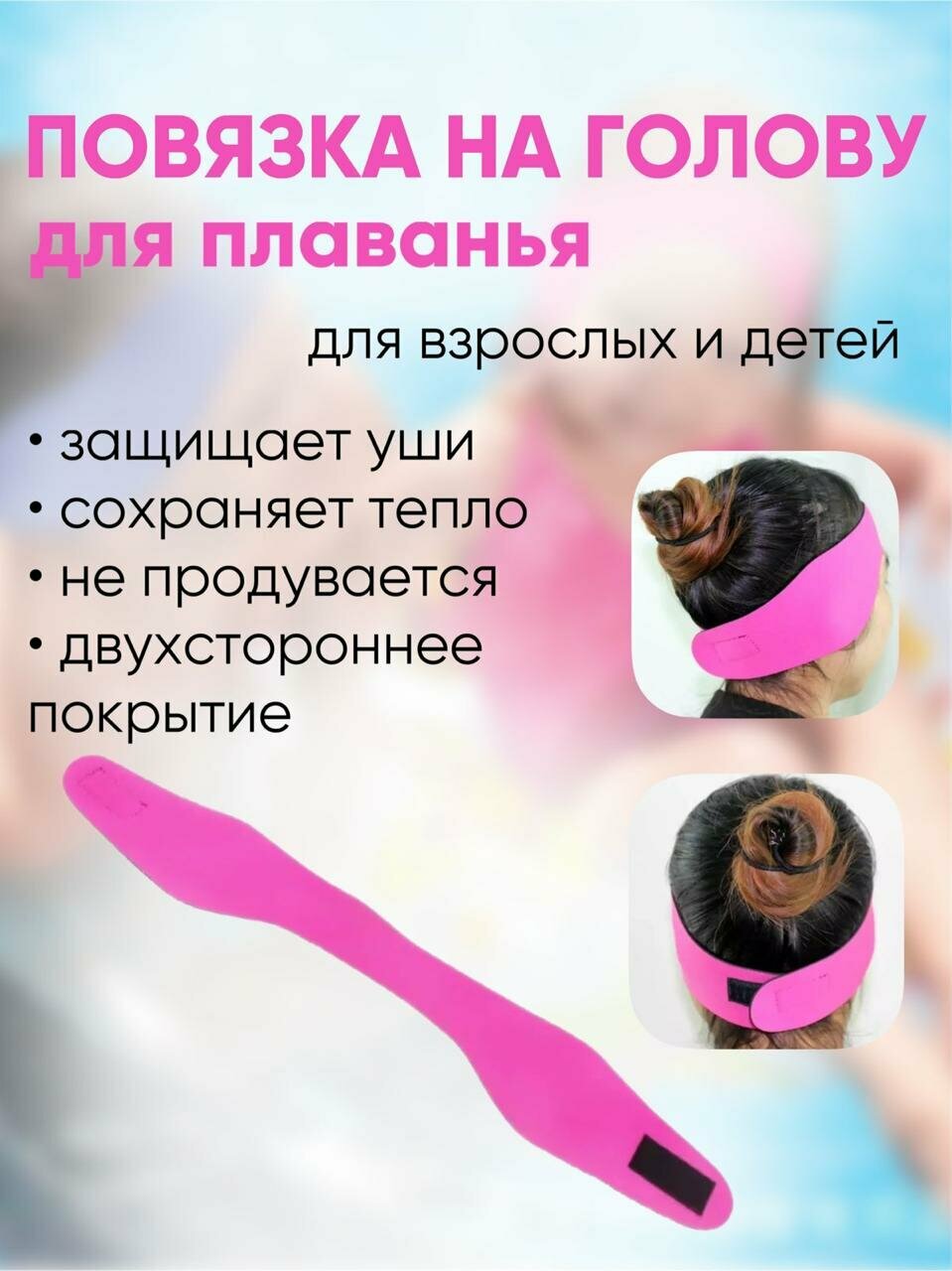 Повязка для плавания на голову для бассейна, шапочка для бассейна повязка на уши, розовая М информация: