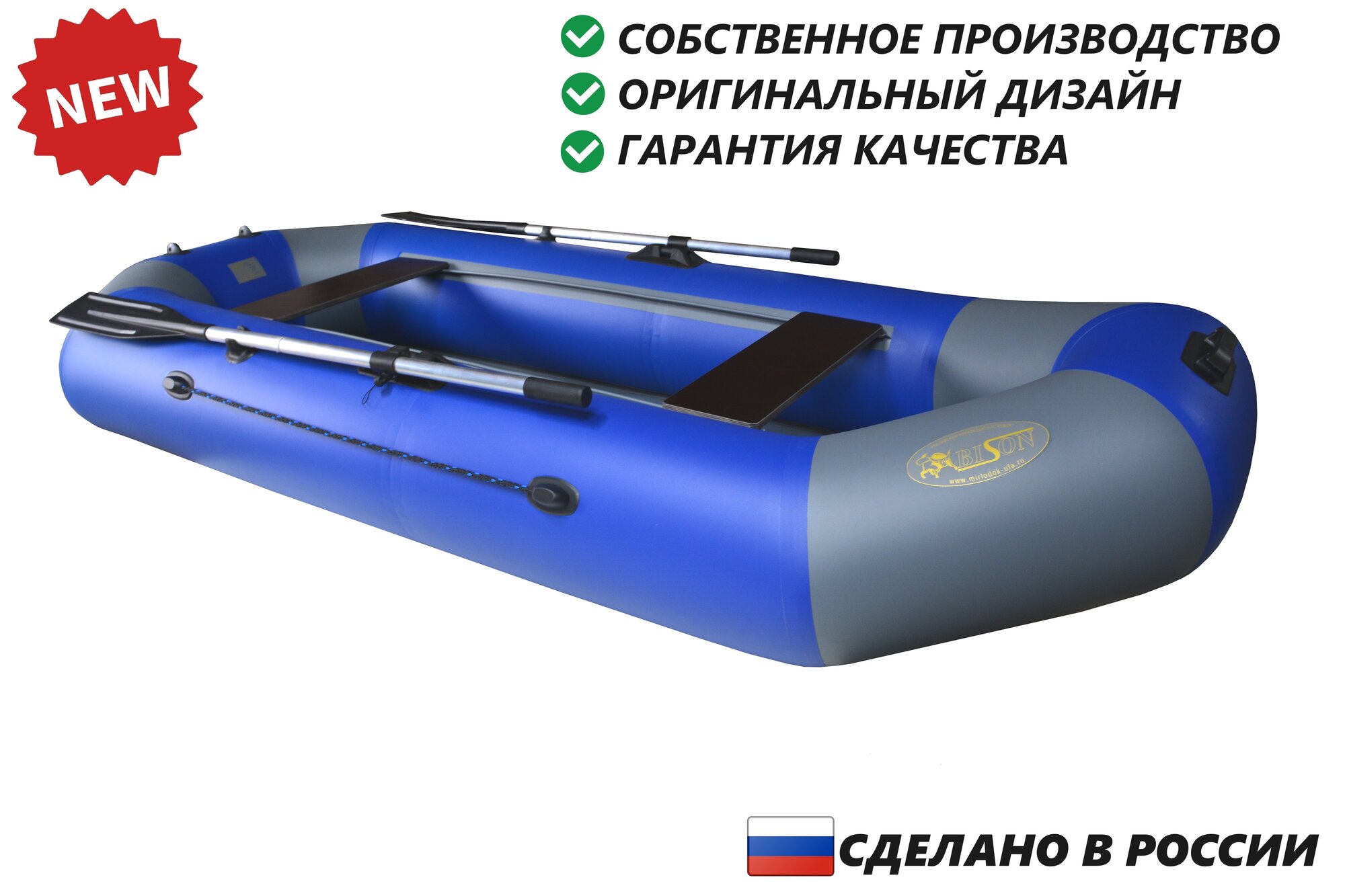 Надувная двухместная пвх лодка Бизон-285 (синий/серый) информация: