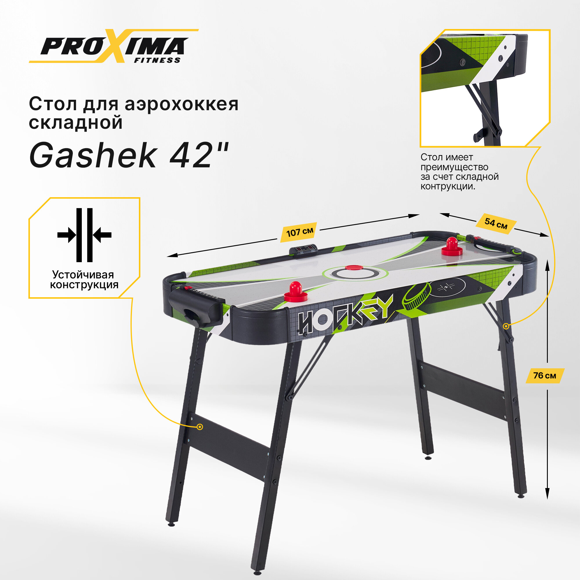 Стол для аэрохоккея складной Proxima Gashek 42" G14208, складной информация:
