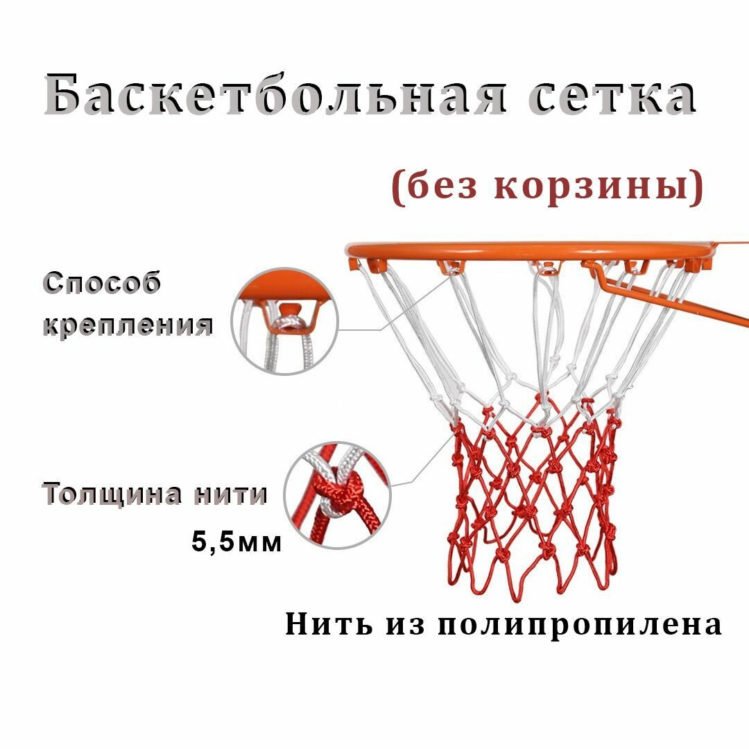 Баскетбольная сетка из полипропилена цвет Бел.крас. (толщина нити 5.5мм) информация: