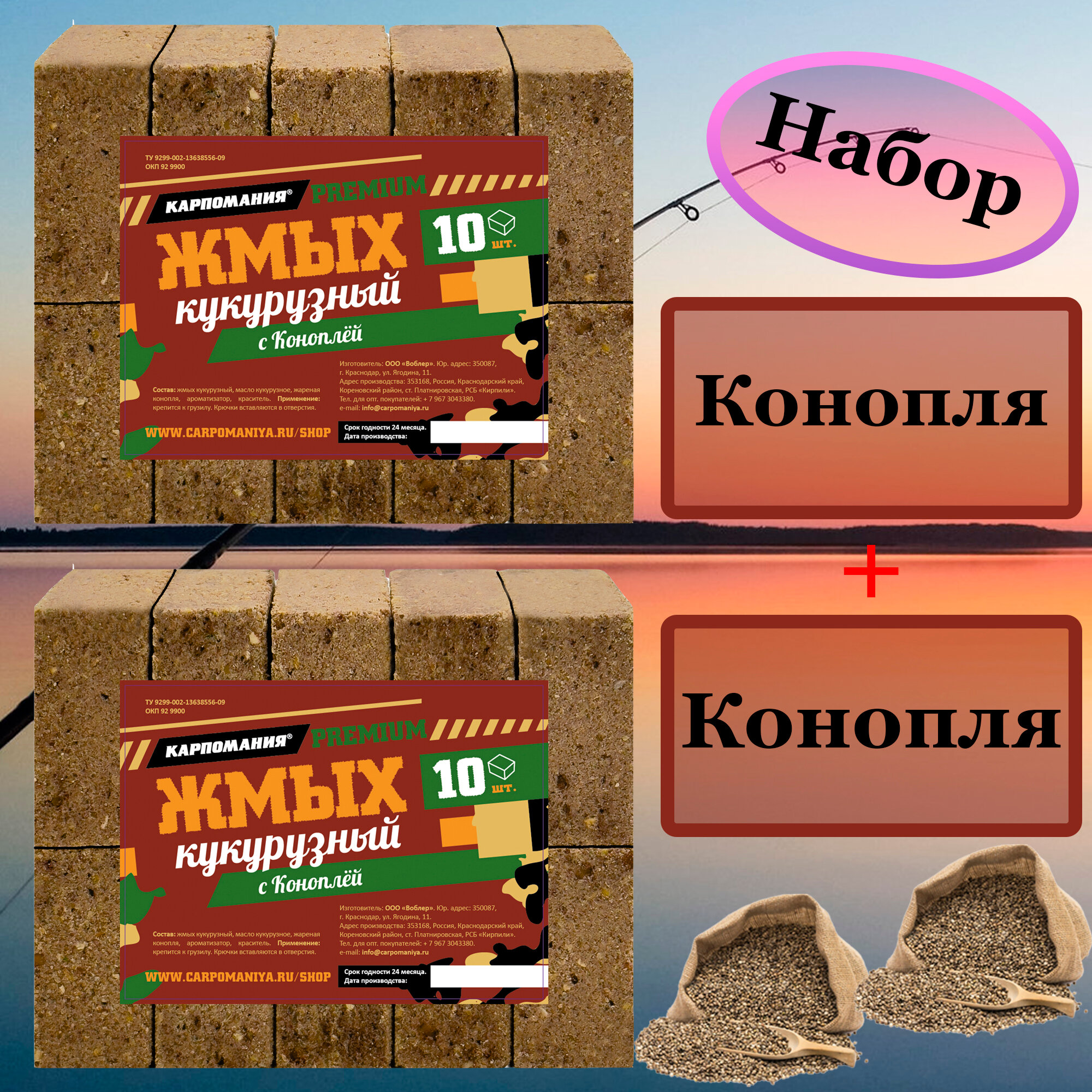Набор 2шт Жмых кукурузный PREMIUM с коноплей кубики информация:
