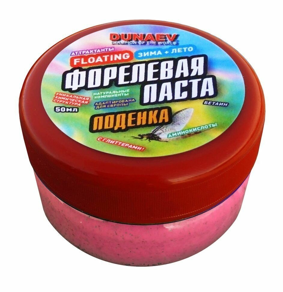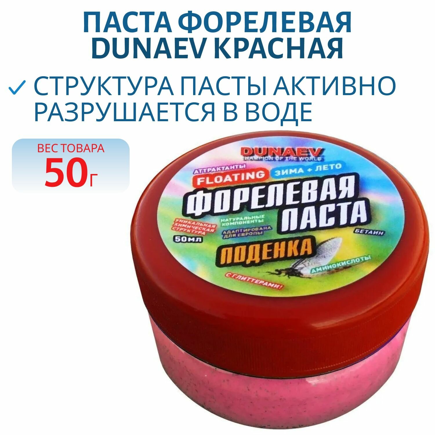 Паста форелевая Dunaev, 50 мл, Форель, Поденка, Красная информация: