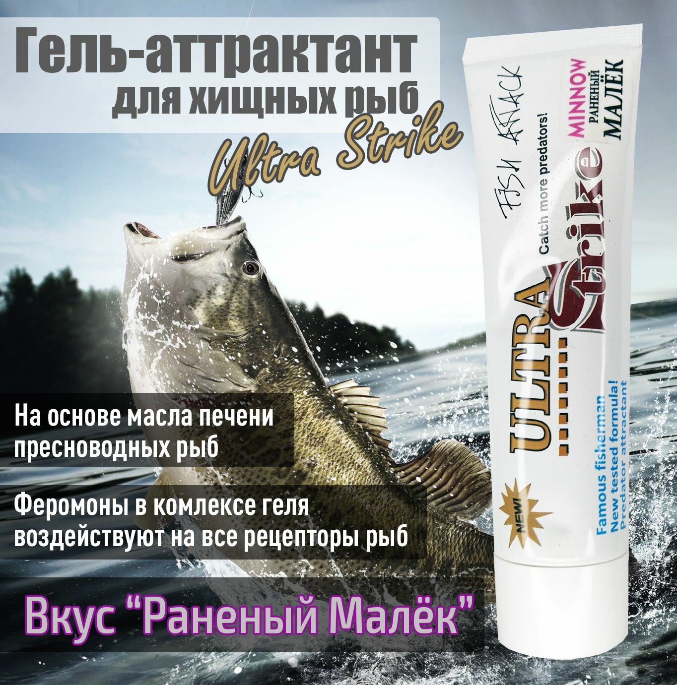 Отзывы на Гель-аттрактант для хищных рыб Ultra Strike Раненый Малек 100мл