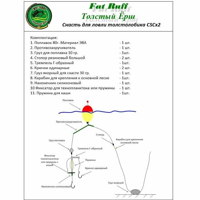 Снасть для ловли толстолобика Fat Ruff CSCx2, Г-образный тремпель + пружина информация: