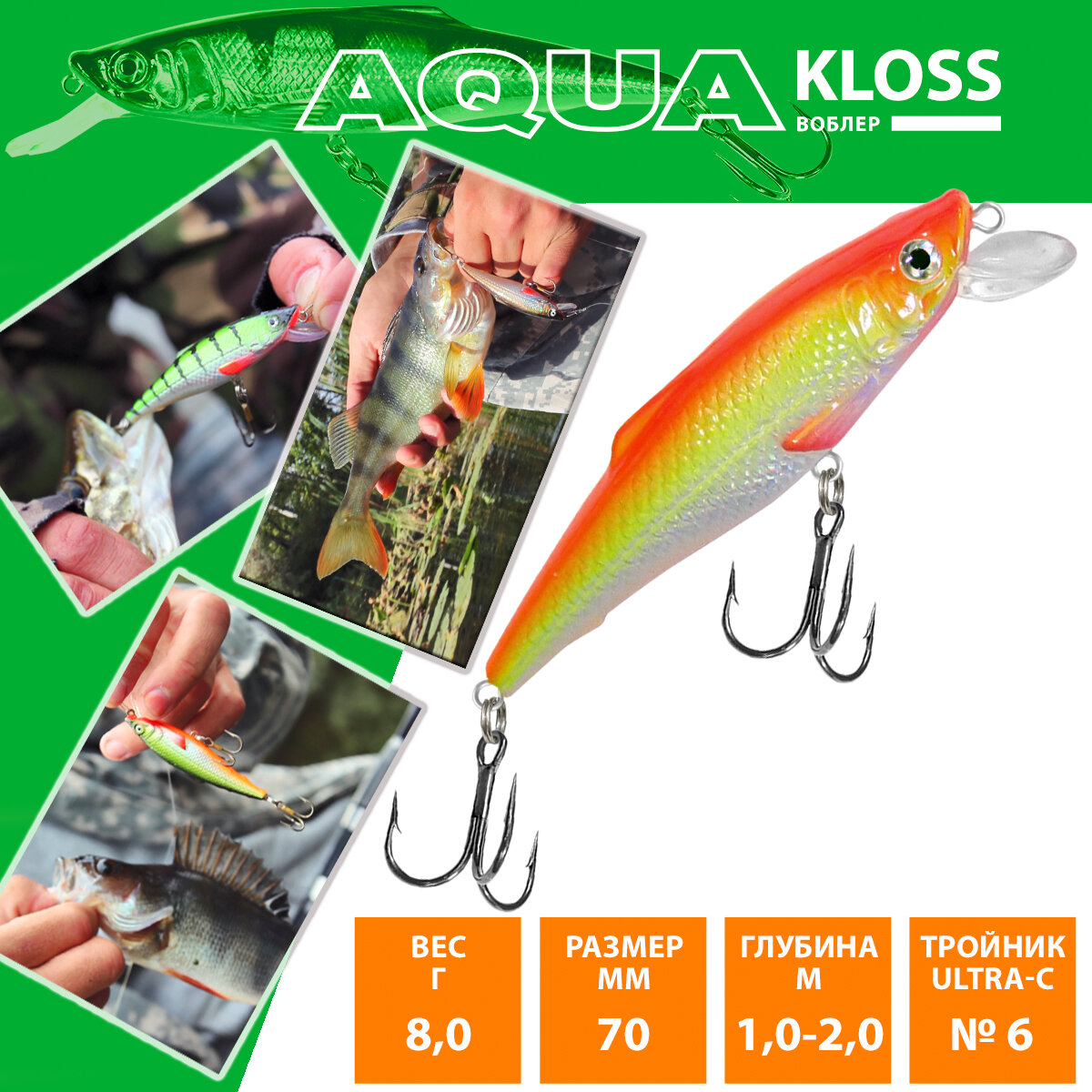 Отзывы на Воблер для рыбалки плавающий AQUA Kloss 70mm 8g заглубление от 1 до 2m цвет 029
