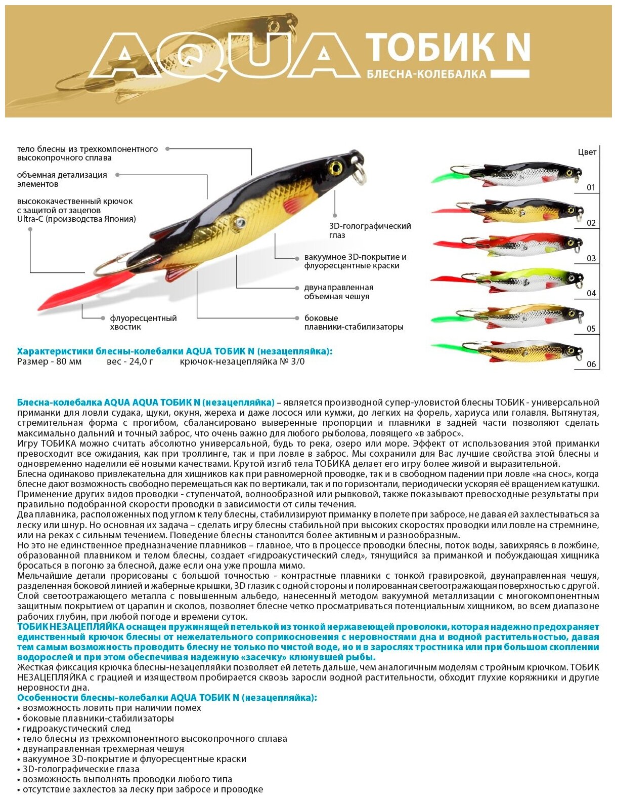 Блесна колебалка незацепляйка для рыбалки AQUA Тобик 80mm 24g цвет 02 информация: