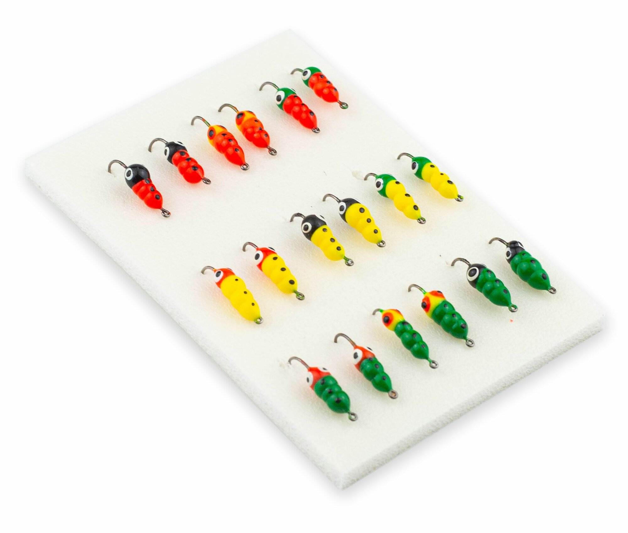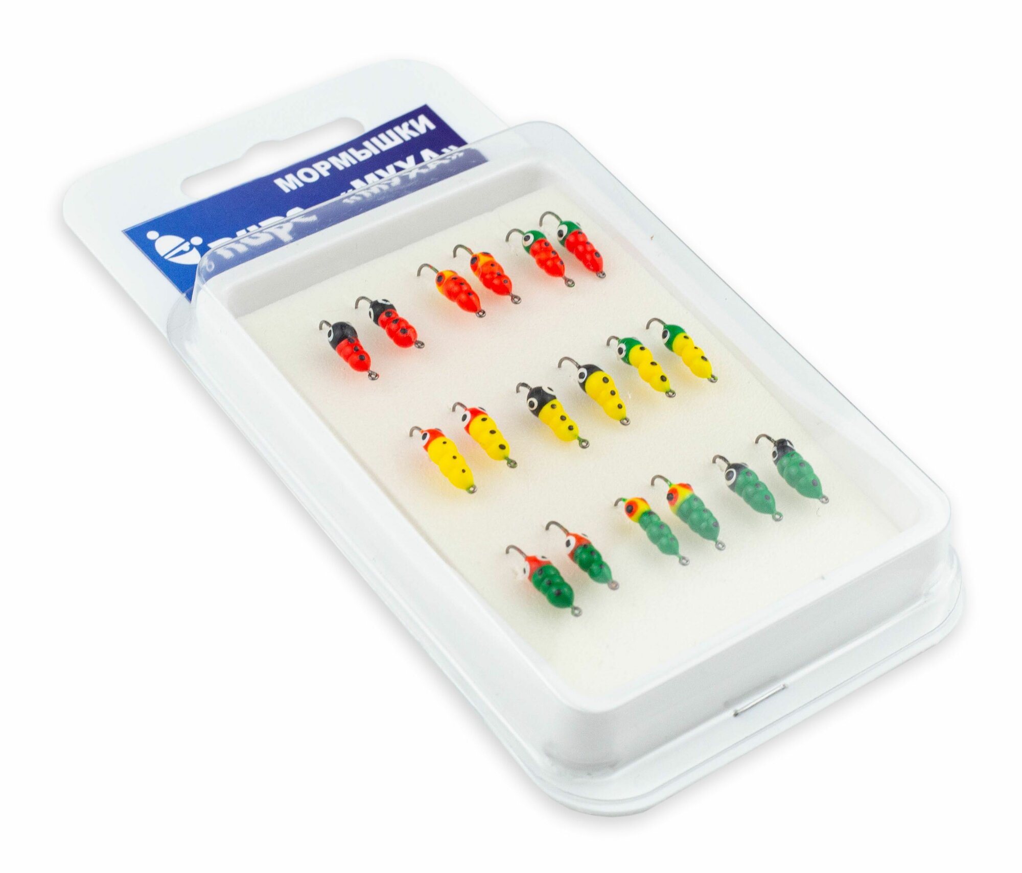 Мормышка пластиковая "Муха". 18 штук. Флуоресцентные цвета. Крючок Kumho. информация: