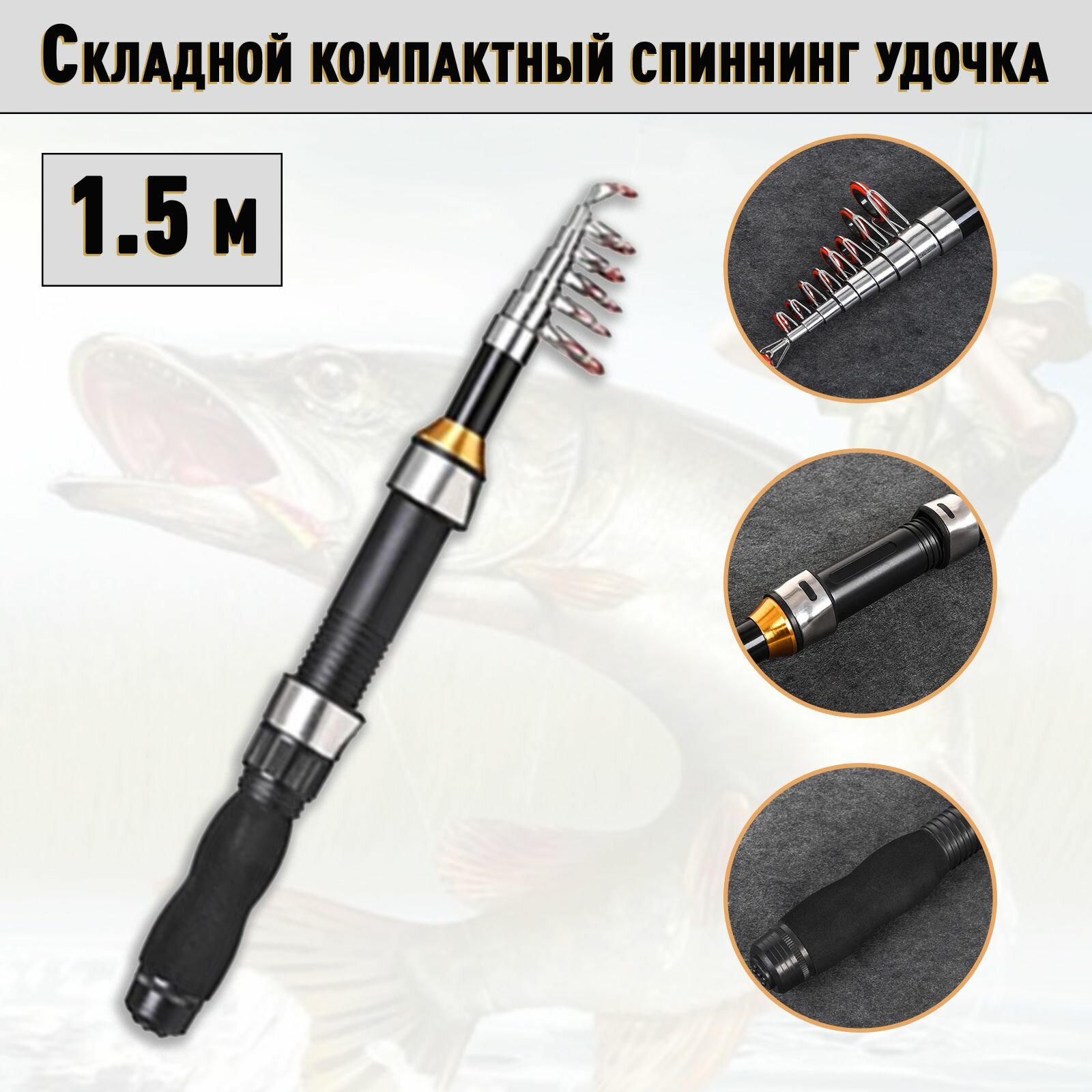 10 цен на Складной компактный спиннинг удочка/ Ультракороткое портативное удилище 1.5 метра 150 см
