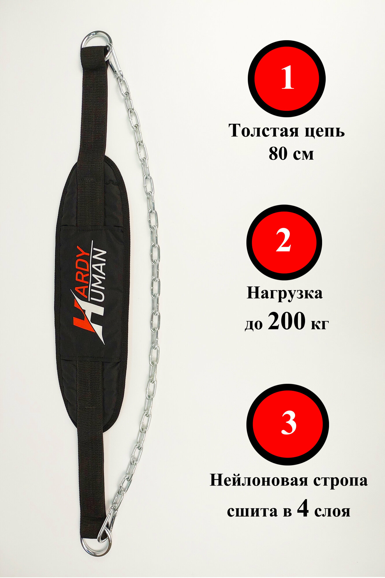 10 цен на Пояс для подтягивания с цепью HardyHuman (black) - атлетическое снаряжение для тренировок