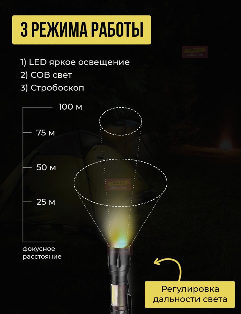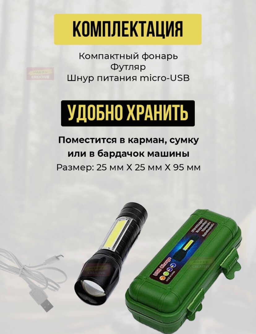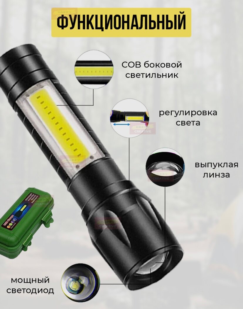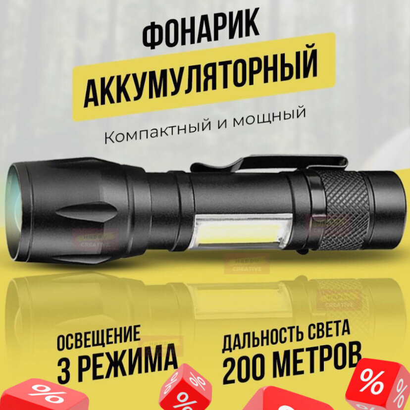 10 цен на Фонарик аккумуляторный светодиодный с зумом