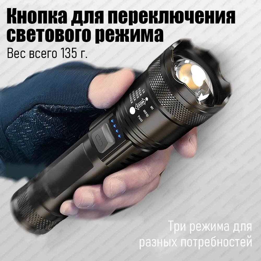Отзывы на Фонарик мощный белый лазер, многофункциональный, заряжаемый, зум, патрульный прожектор, зарядка телефона