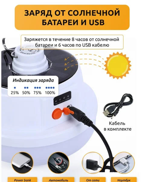 Отзывы на Кемпинговый фонарь аккумуляторный, YD-1358, на солнечной батарее, подвесной, 48 диодов