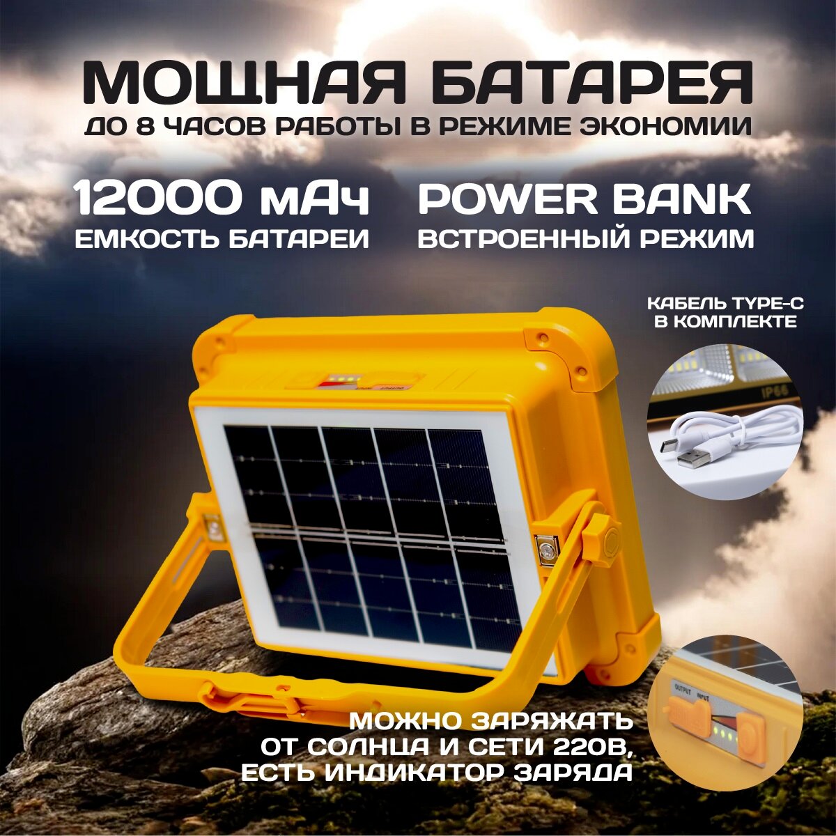 Фонарь прожектор Solar Lamp светодиодный аккумуляторный на солнечной батарее Фонарик светодиодный информация: