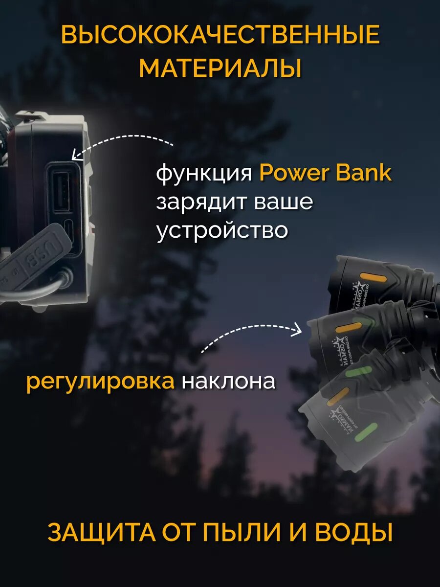 Налобный фонарь аккумуляторный, мощный светодиодный 18650