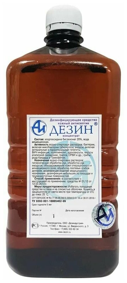 Дезин Средство дезинфицирующее 1 л информация: