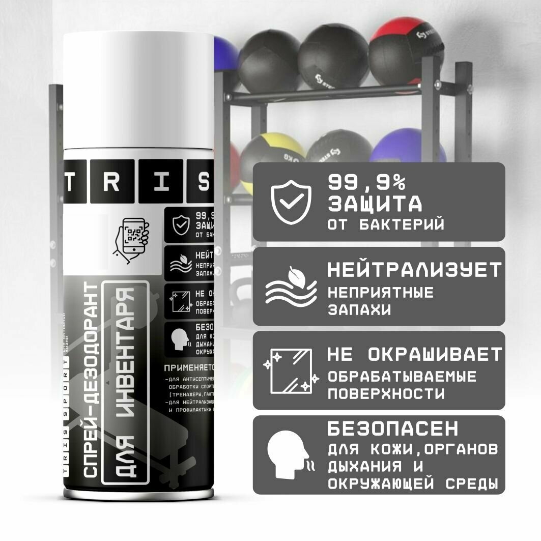 Отзывы на Спрей дезинфектор спортивного инвентаря, защита от бактерий, антисептик, 500 мл. TRIS