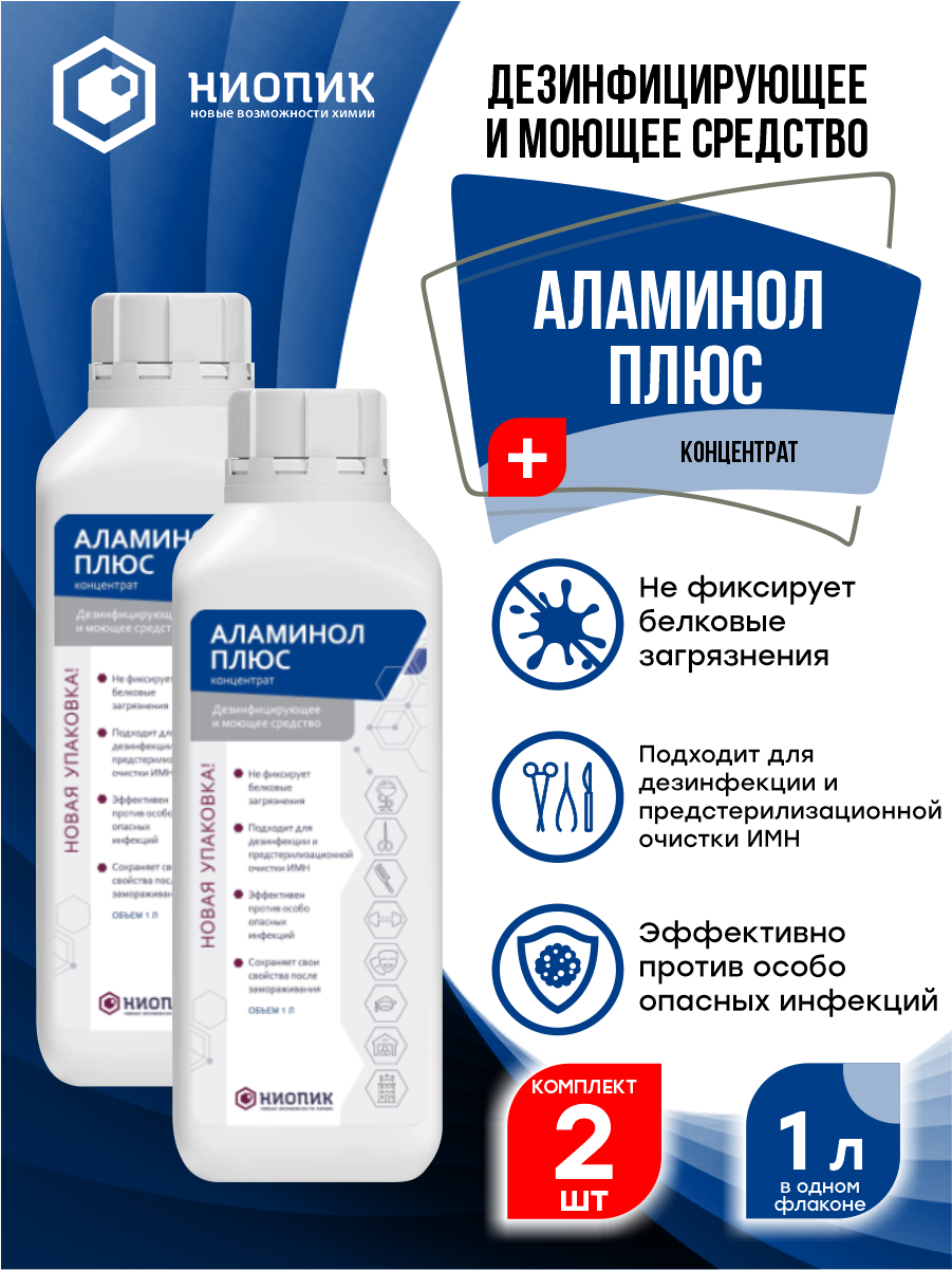 Дезинфицирующее средство Аламинол Плюс 1 литр х 2 шт. информация: