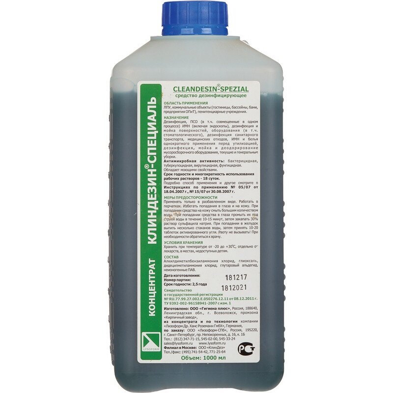 10 цен на Клиндезин Средство дезинфицирующее Клиндезин-специаль, 1000 мл, 1000 г, тип крышки: винтовая