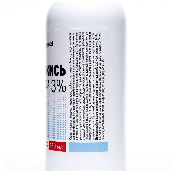 | Состав | Раствор для местного и наружного применения 3% 150 мл содержит: активное вещество - перекись водорода медицинская от 7,5 до 11 г. |