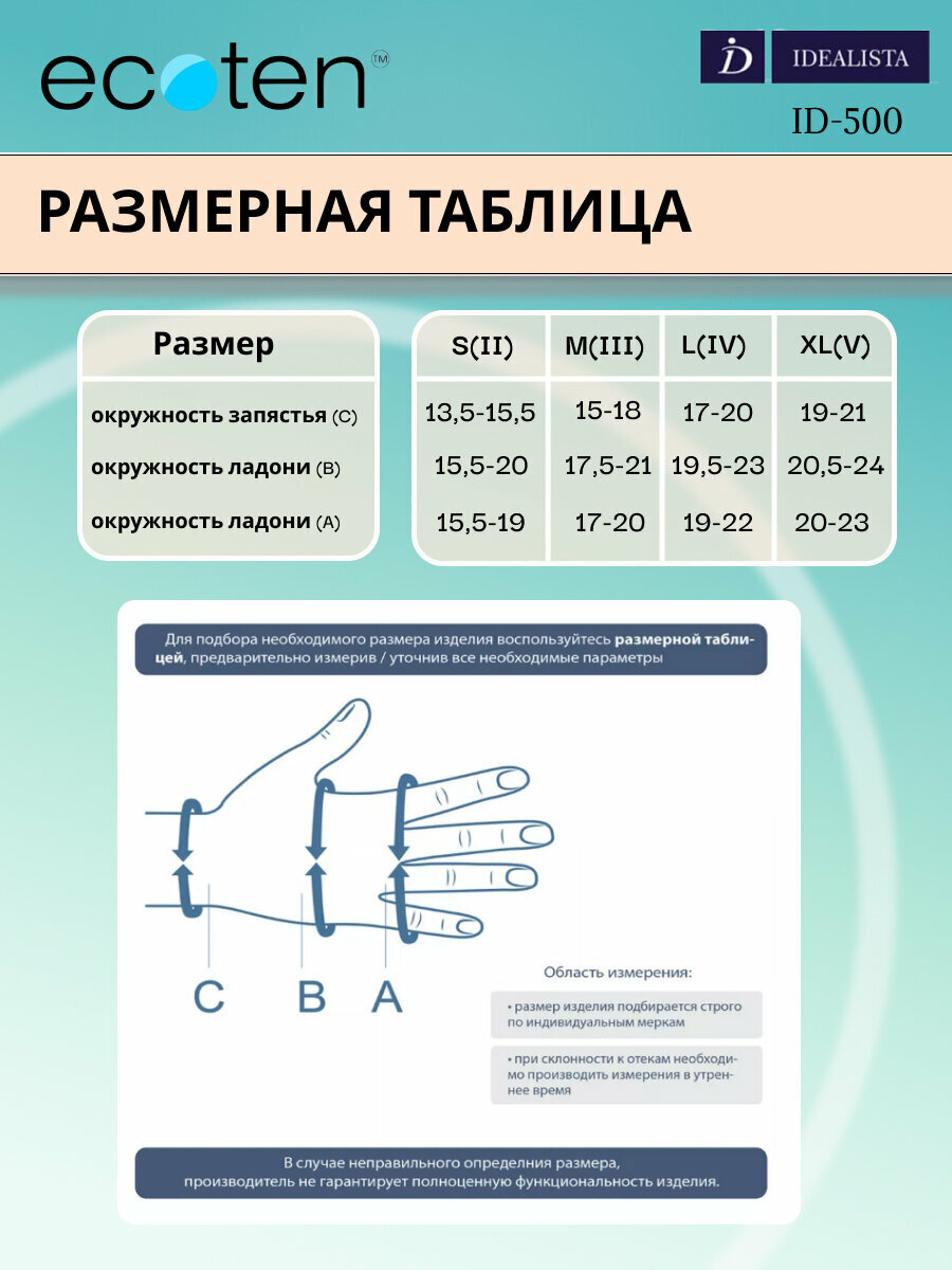 Компрессионная перчатка Idealista 2 класс ID 500, Размер S информация: