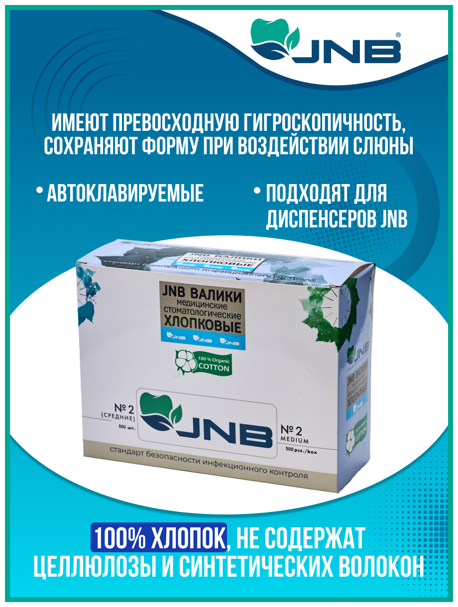 Ватные валики стоматологические №2 JNB 500 шт., из 100% абсорбирующего хлопка информация: