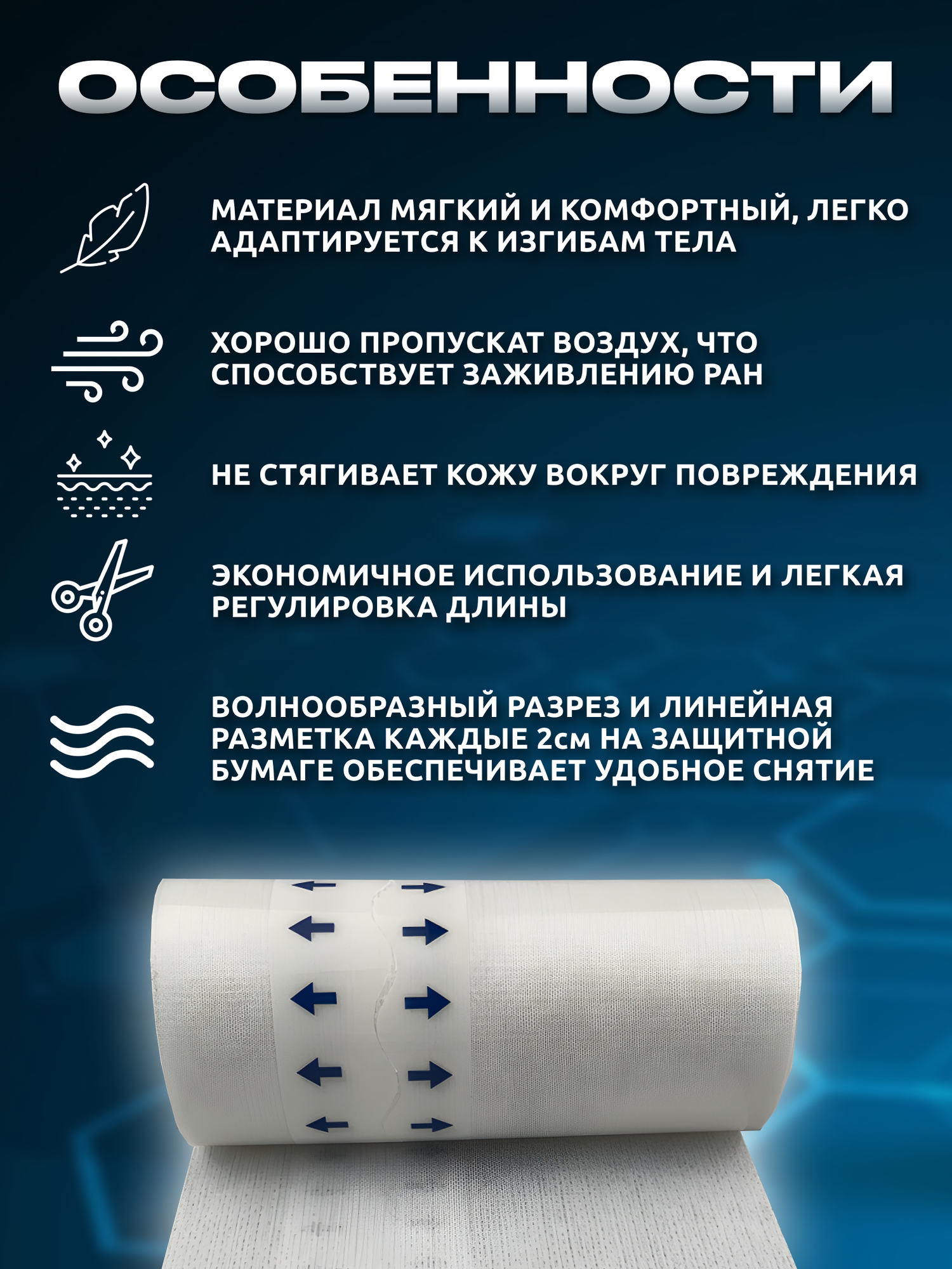| Особенности | в рулоне, гипоаллергенный, для чувствительной кожи, эластичный |