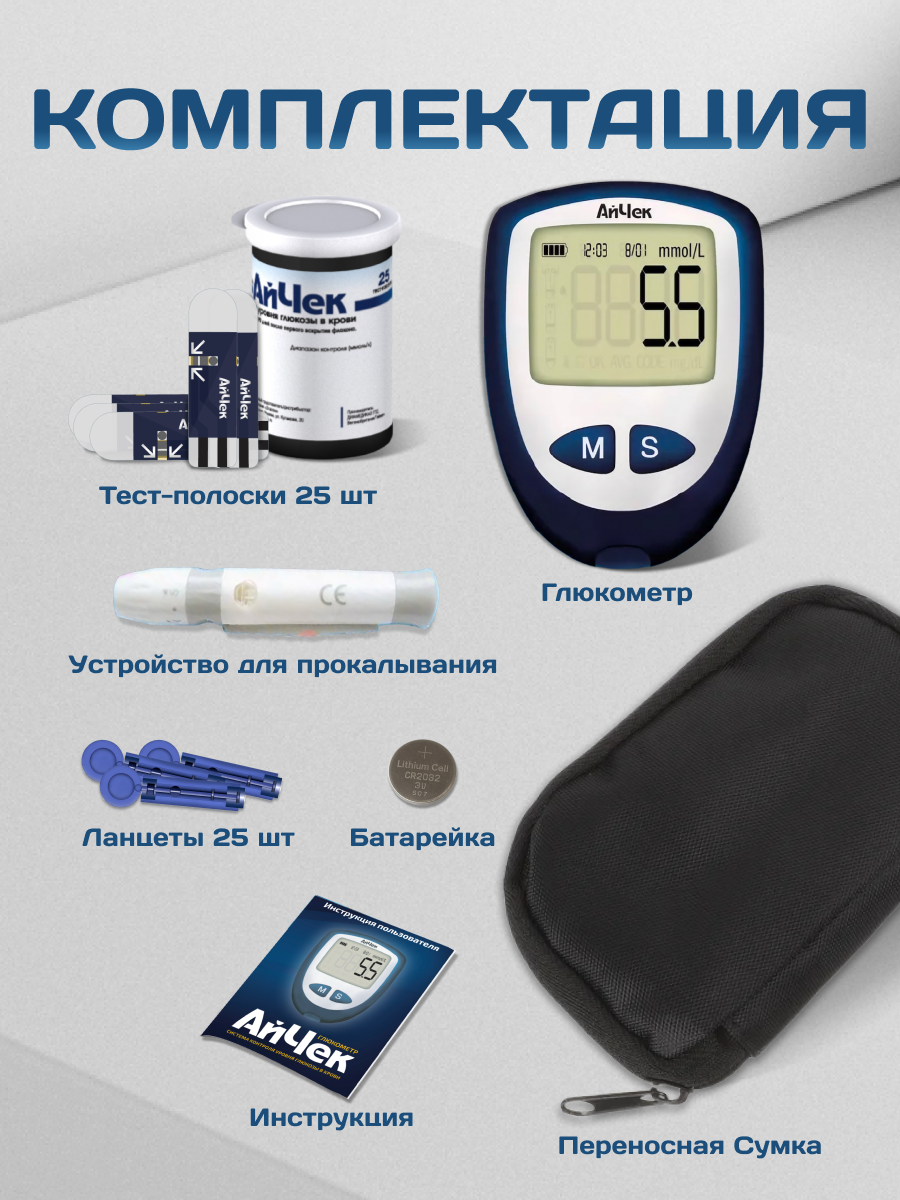 Глюкометр АйЧек + 25 тест-полосок + 25 ланцетов информация: